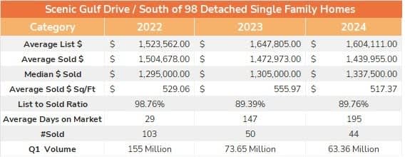Understanding the Quarter 1 2024 Real Estate Trends Along Scenic Gulf Drive / South of 98 for non Gulf Front detached single family homes